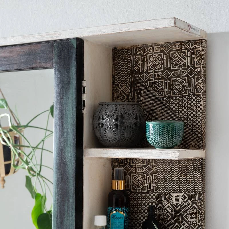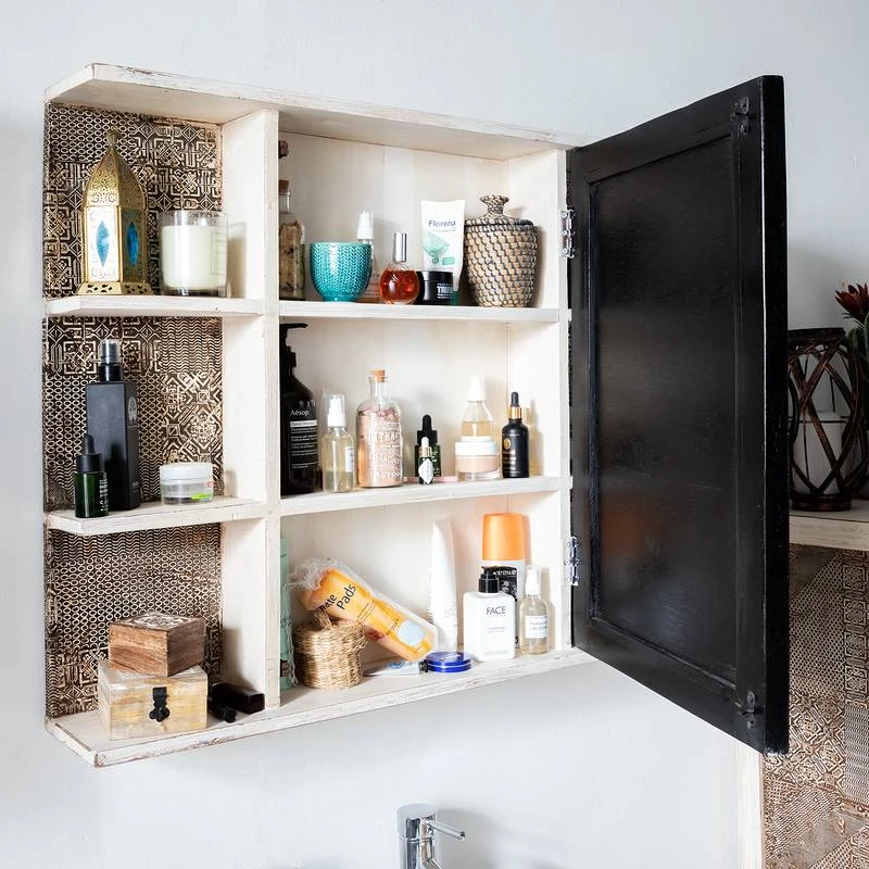 - 1 porte en bois, 1 miroir et 6 surfaces de rangement