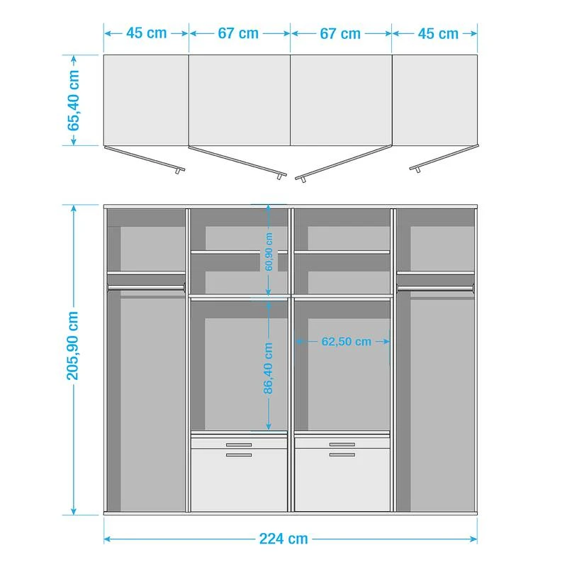 - Colonne de salle de bain (L x H x P) chaque : 45 x 205,8 x 65,4 cm