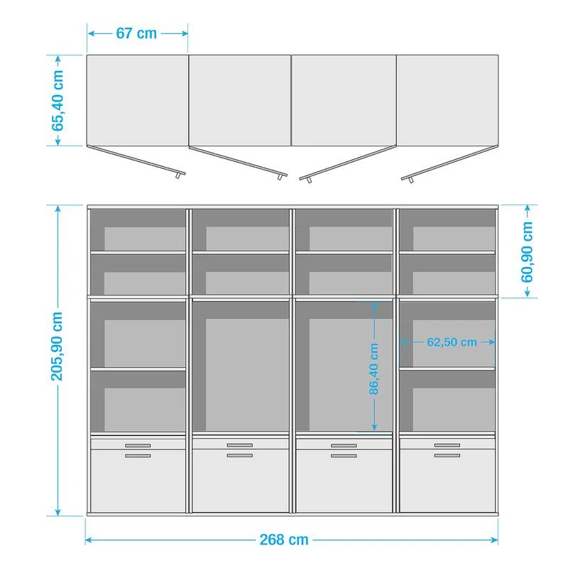 - Caisson haut (L x H x P) chaque : 67 x 60,9 x 65,4 cm