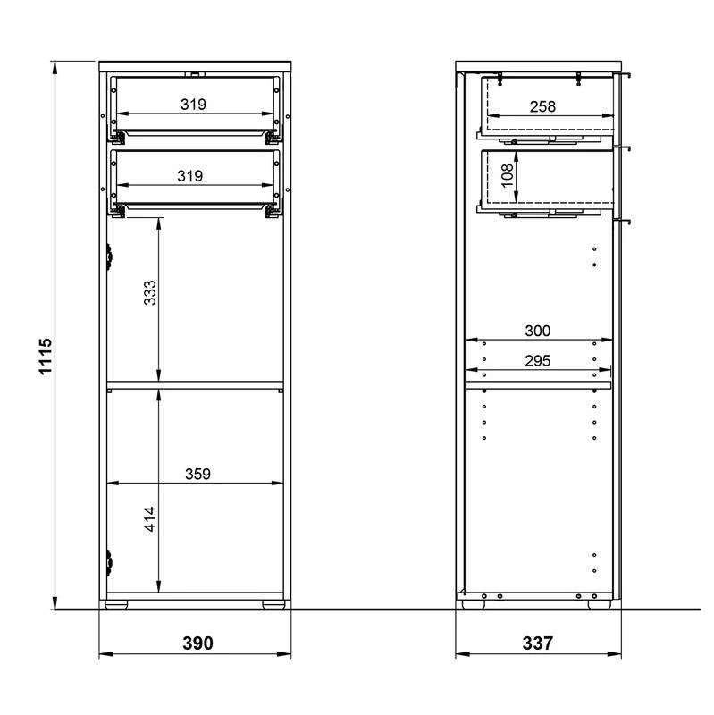 - Dimensions intérieures du tiroir : 31,9 x 10,8 x 25,8 cm