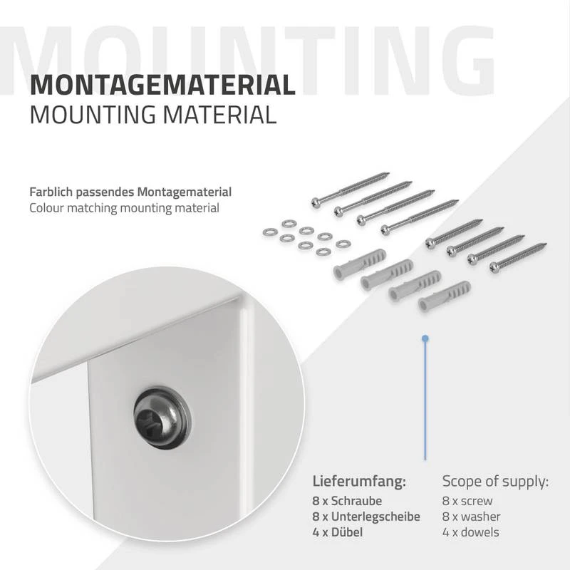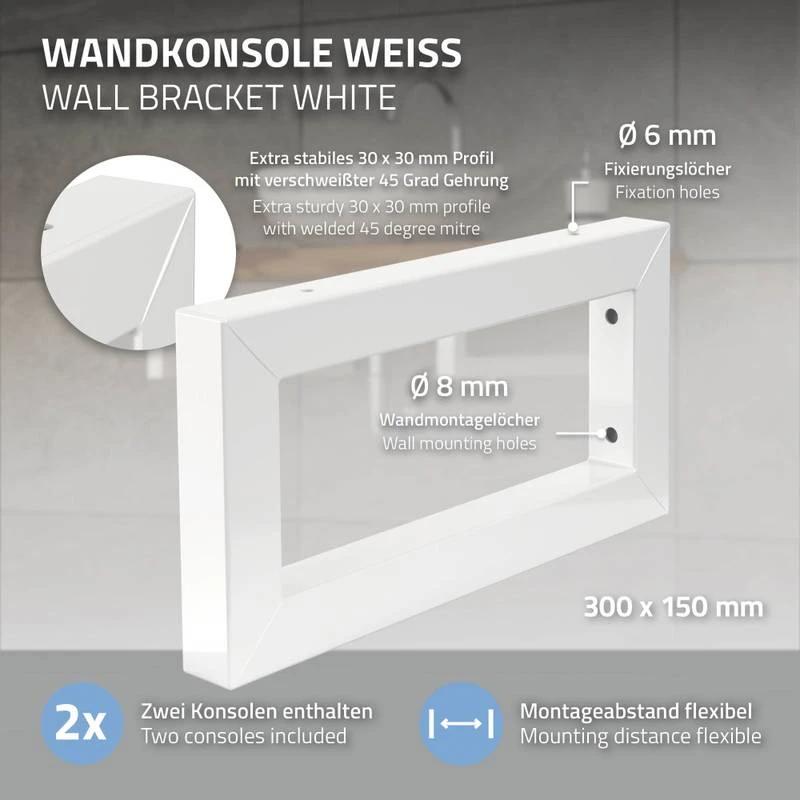 - Contenu de la livraison : 2x console murale Avec matériel de montage (8 x vis, 8 x rondelles, 4 x chevilles)