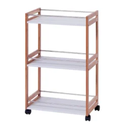 - 3 surfaces de rangement avec barres en bois Ă l’avant et Ă l’arrière