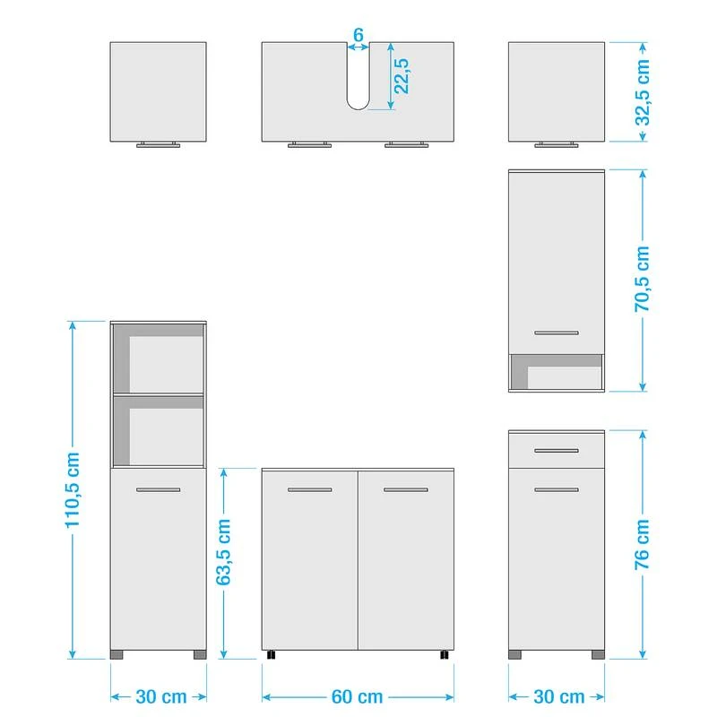 - Armoire suspendue : 30 x 70,5 x 20,5 cm