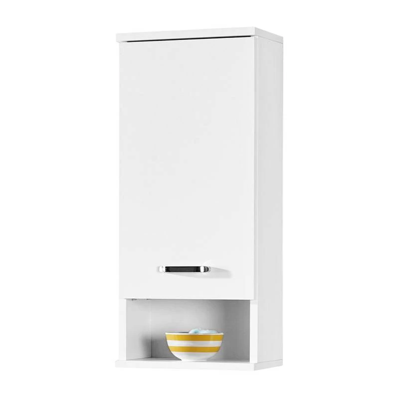 - Armoire suspendue : 1 porte renfermant 1 tablette d’étagère, 1 compartiment ouvert