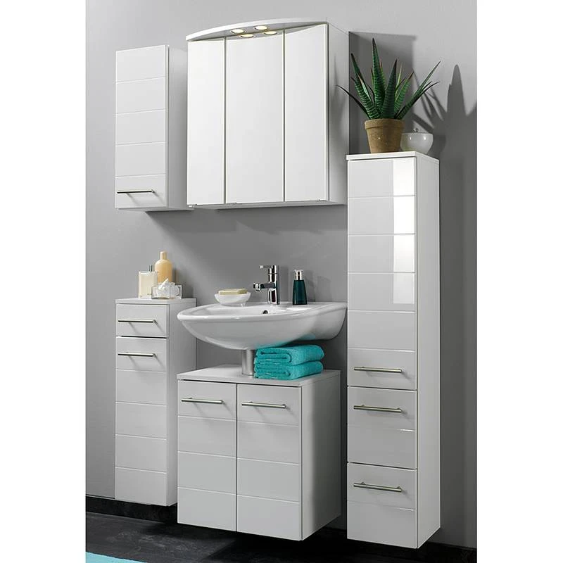 - Meuble sous vasque avec 2 portes et échancrure pour le siphon