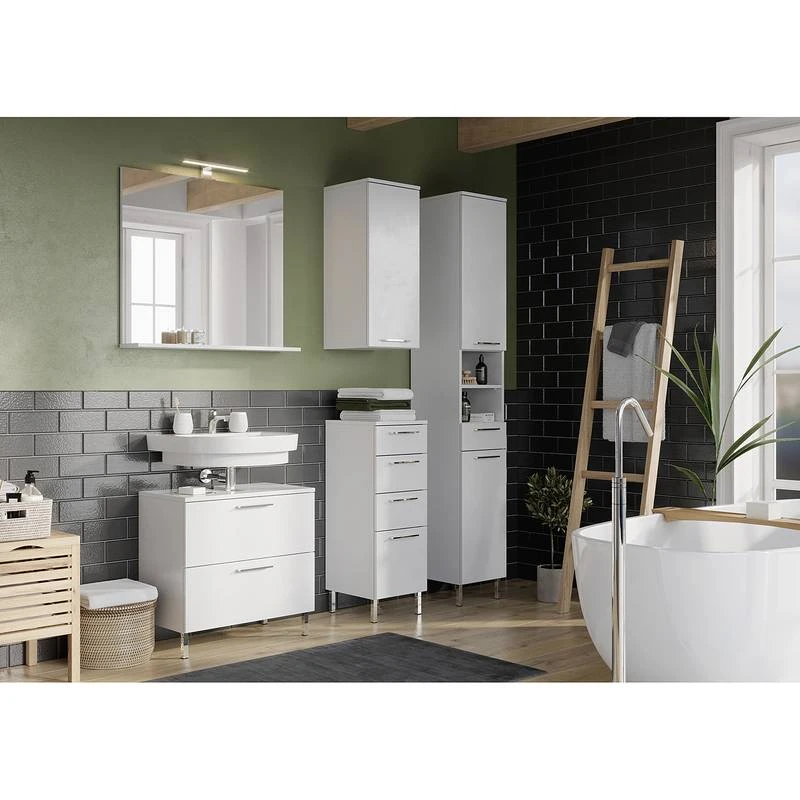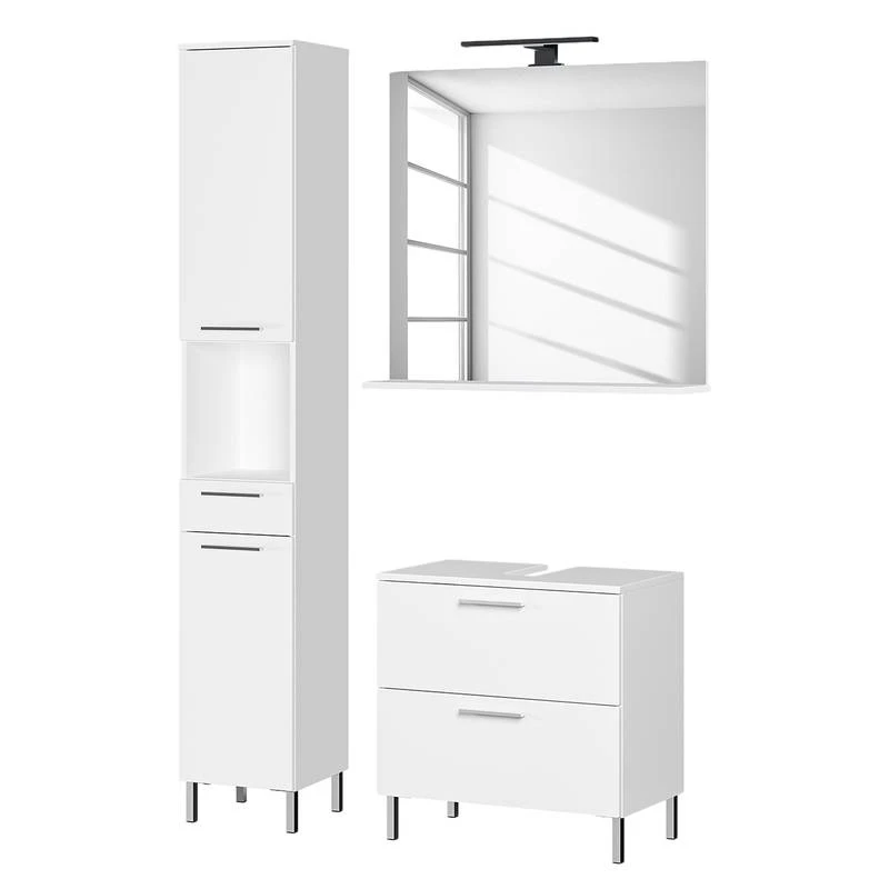 - Contenu de la livraison : Ensemble de salle de bain comprenant 1 meuble sous lavabo, 1 colonne de salle de bain et 1 miroir avec éclairage