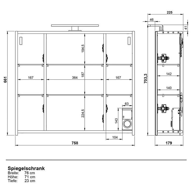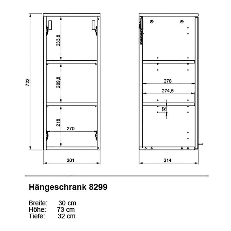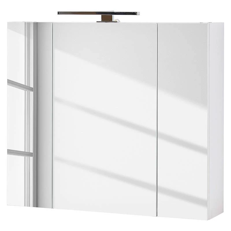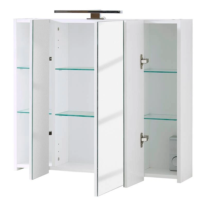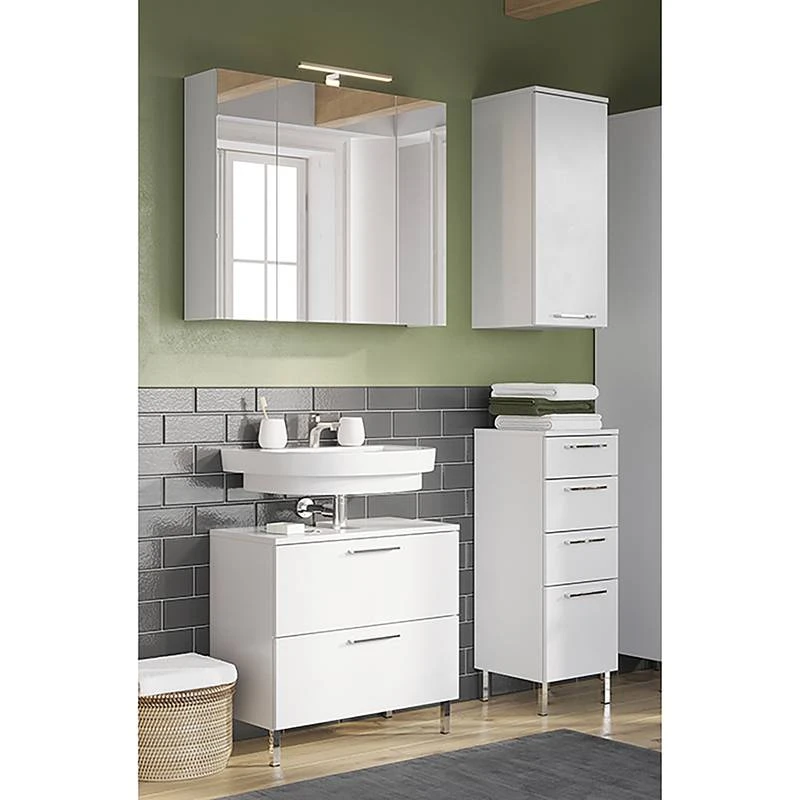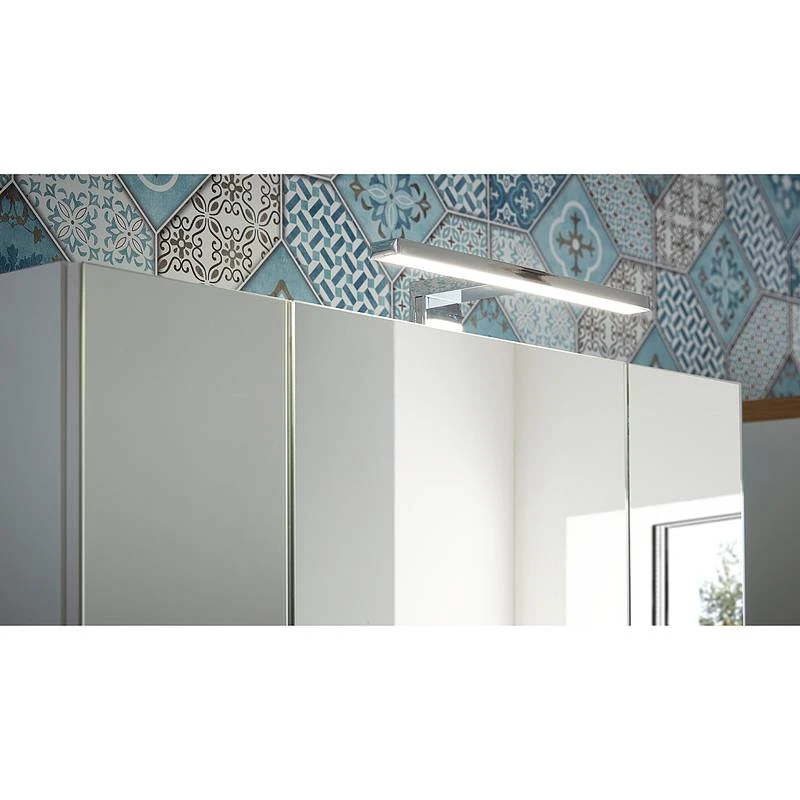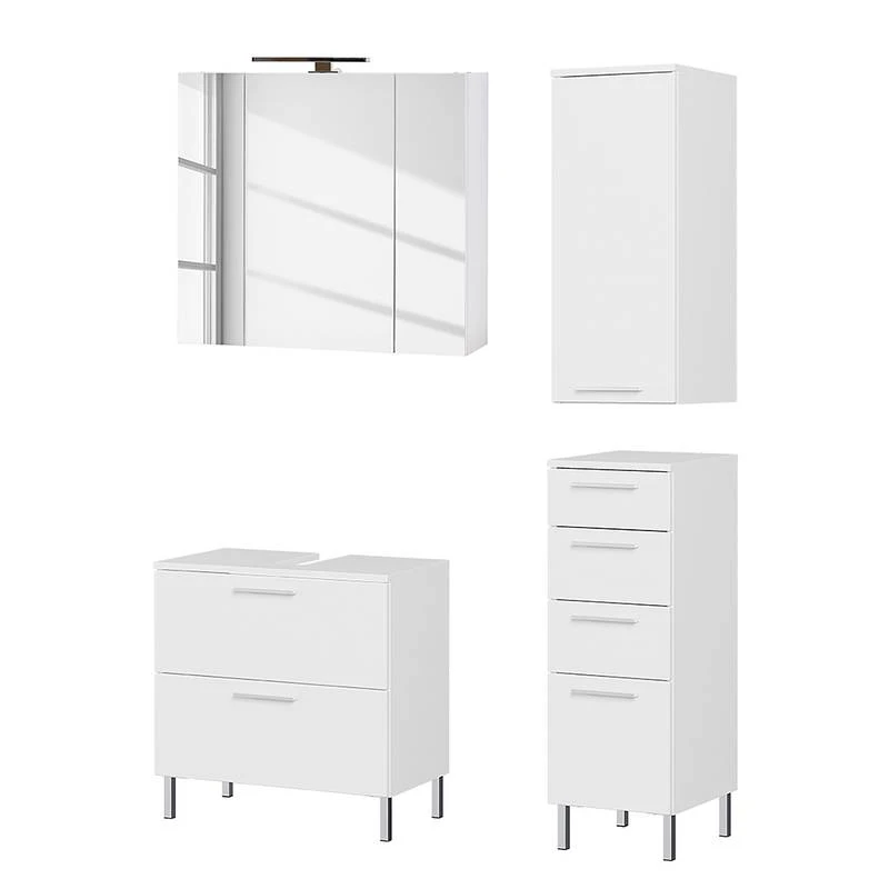 - Contenu de la livraison : Salle de bain comprenant 1 meuble sous vasque, 1 armoire de toilette avec éclairage, 1 armoire murale et 1 meuble bas, sans accessoires