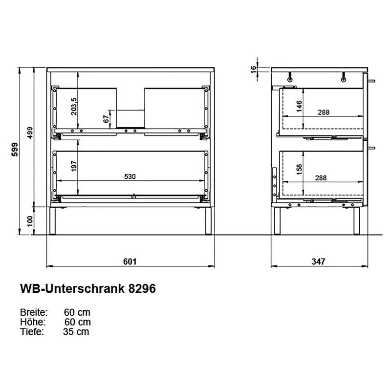 - Meuble sous vasque : 60 x 60 x 35 cm