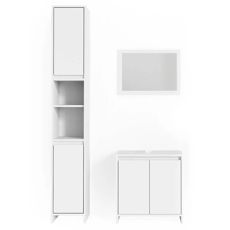 - Contenu de la livraison : • 1x miroir • 1x meuble sous-vasque • 1x meuble haut Décoration non incluse