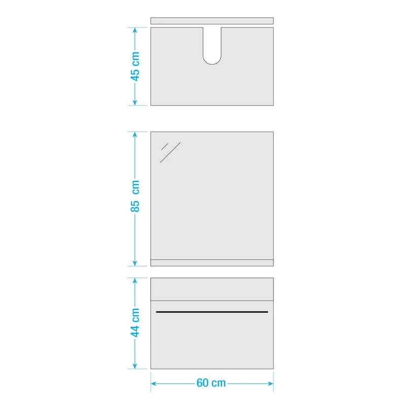 - Meuble sous vasque (L x H x P) : 60 x 44 x 45 cm