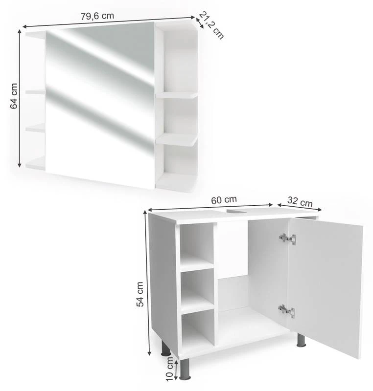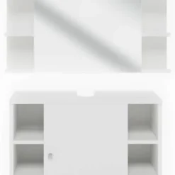 - Contenu de la livraison : • 1x armoire de toilette• 1x meuble sous-vasque Décoration non incluse
