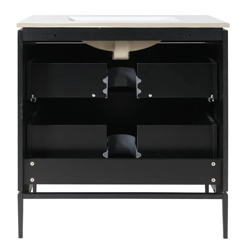 - Contenu de la livraison : Salle de bain comprenant 1 meuble avec vasque en céramique et 1 armoire de toilette sans éclairage