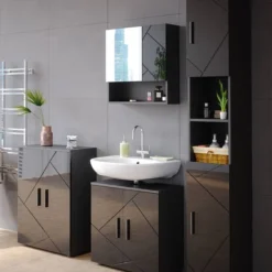 - Contenu de la livraison : • 1x armoire de toilette • 1x meuble sous-vasque • 1x meuble de salle de bains • 1x placard