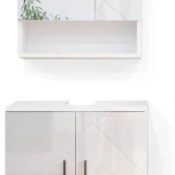 - Contenu de la livraison : • 1x armoire de toilette • 1x meuble sous-vasque Décoration non incluse