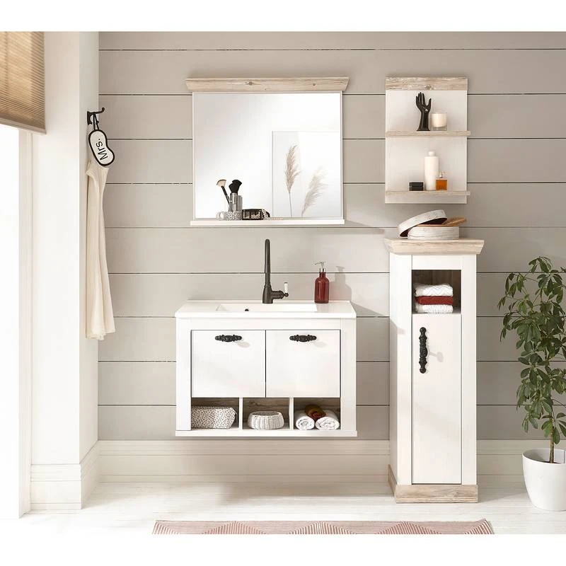 - Contenu de la livraison : Ensemble de salle de bain comprenant 1 meuble sous lavabo, 1 armoire de salle de bain, 1 étagère murale et 1 miroir