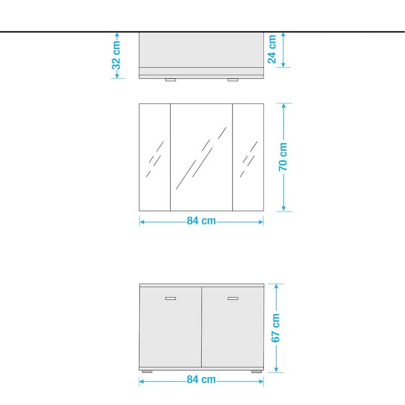 - Armoire de toilette (LxHxP) : 84 x 70 x 24 cm