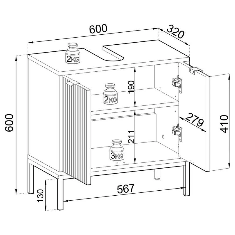 - Meuble sous lavabo (L x H x P) : 60 x 60 x 32 cm
