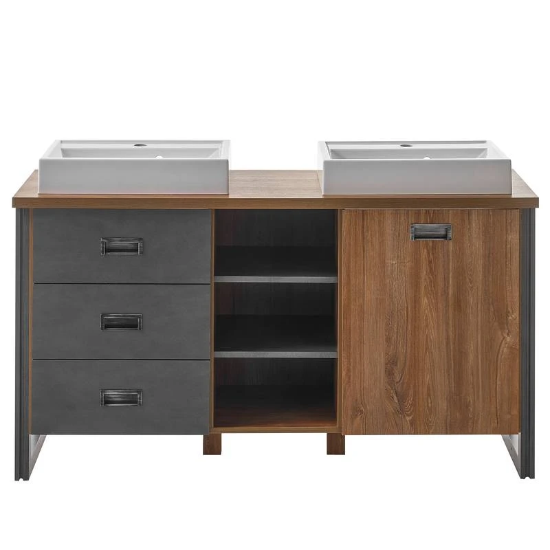 - Contenu de la livraison : Salle de bain comprenant 1 meuble double vasque en fonte minérale, 1 étagère et 2 miroirs
