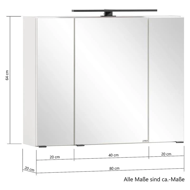 - Armoire de toilette (L x H x P) : 80 x 64 x 20 cm