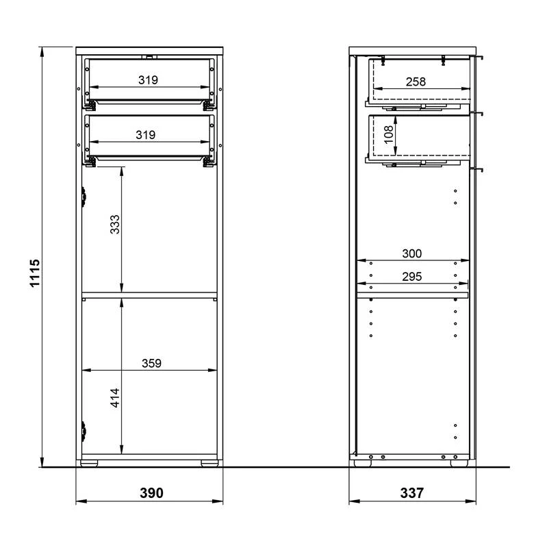 - Dimensions intérieures du tiroir : LxHxP : 31,9 x 10,5 x 25,5 cm et LxHxP : 31,9 x 10,8 x 25,8 cm