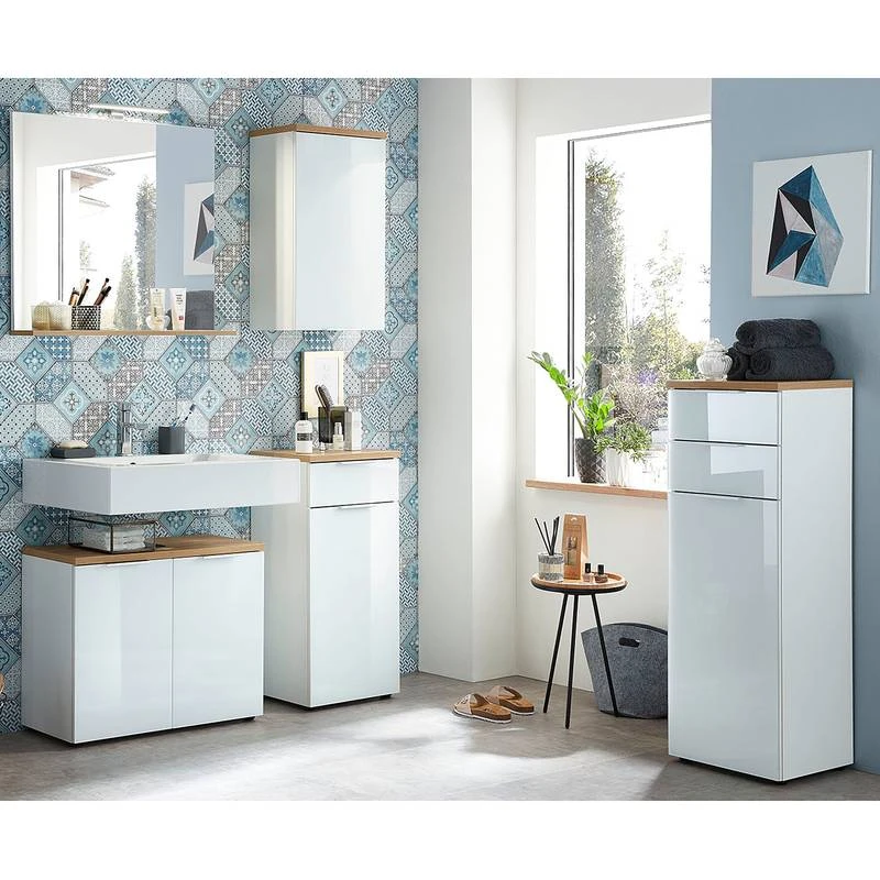 - Contenu de la livraison : 1 meuble sous lavabo, 1 meuble haut, 1 meuble bas et 1 armoire de salle de bain, sans accessoires