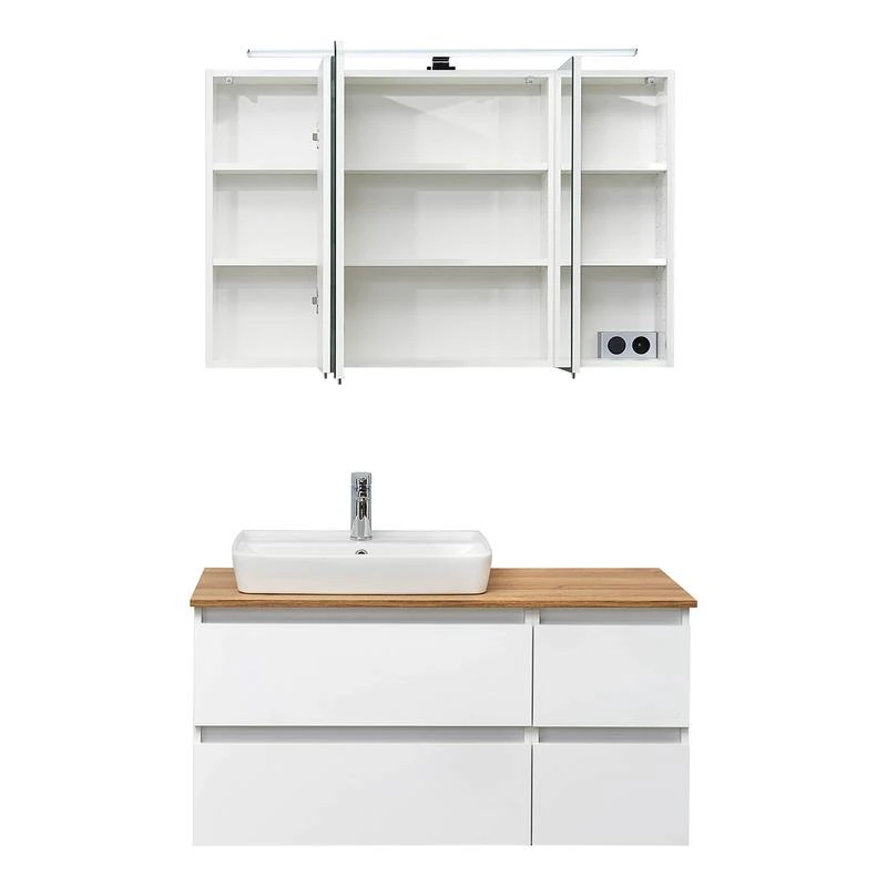 - Un kit d’éclairage sous le meuble ou sous l’armoire de toilette peut être commandé en option