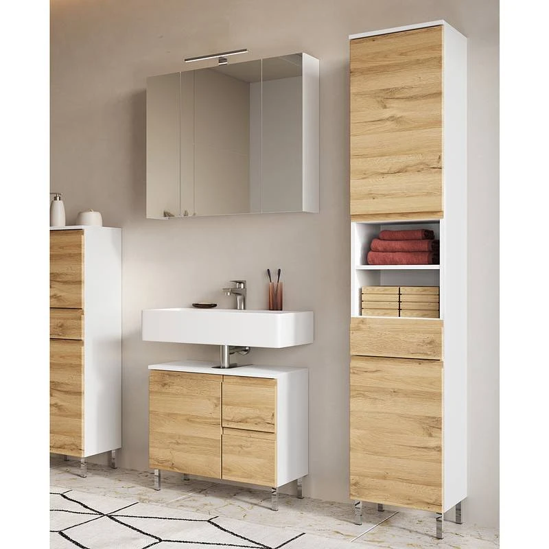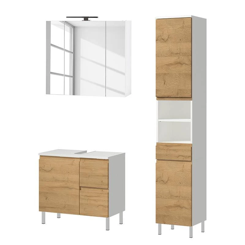 - Contenu de la livraison : Salle de bain comprenant 1 armoire de toilette avec éclairage, 1 meuble sous lavabo et 1 colonne de salle de bain, sans accessoires