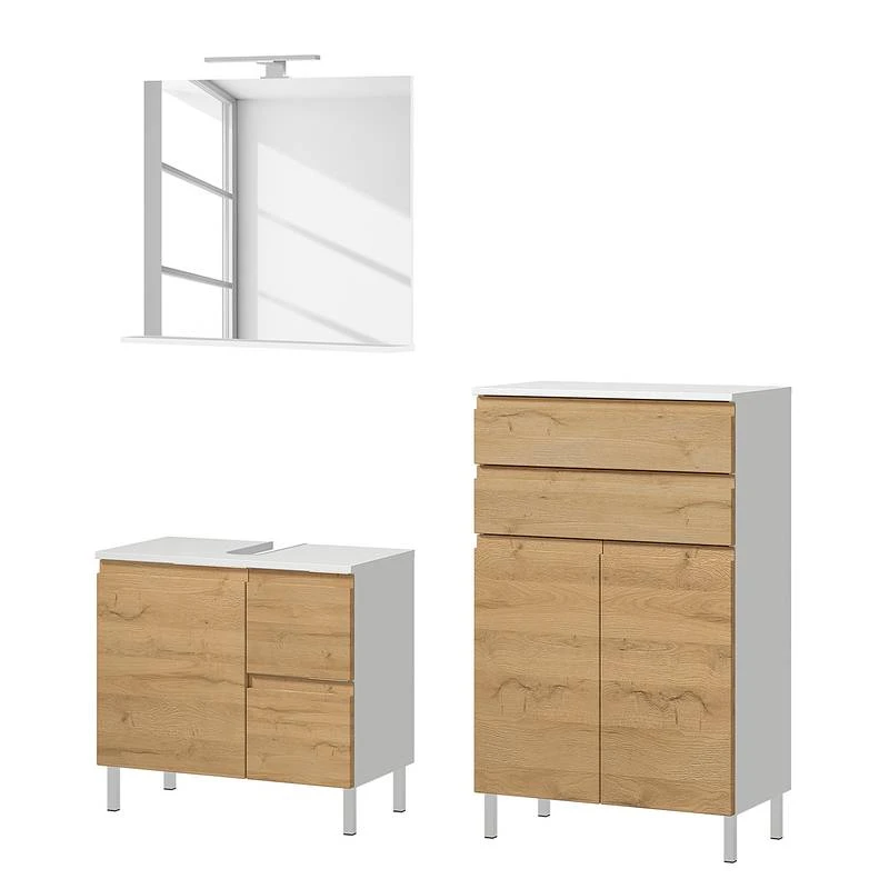 - Contenu de la livraison : Salle de bain comprenant 1 miroir avec éclairage , 1 meuble sous lavabo et 1 colonne de salle de bain, sans accessoires