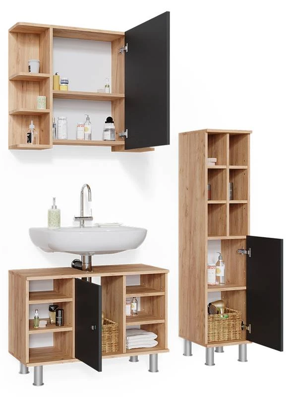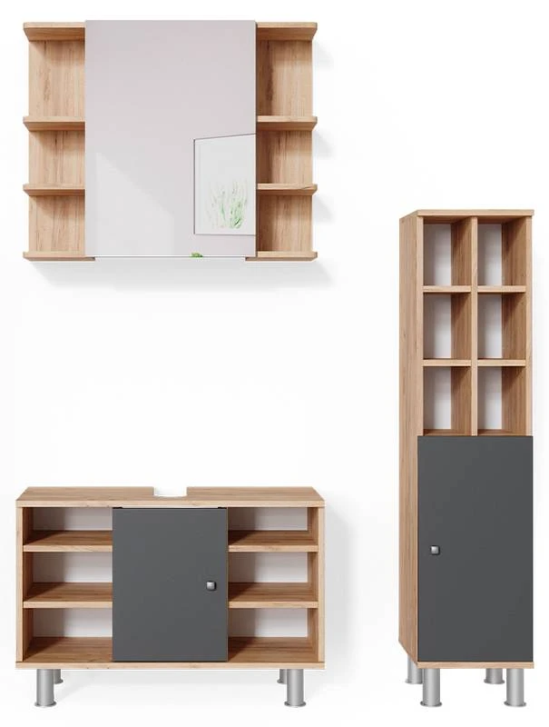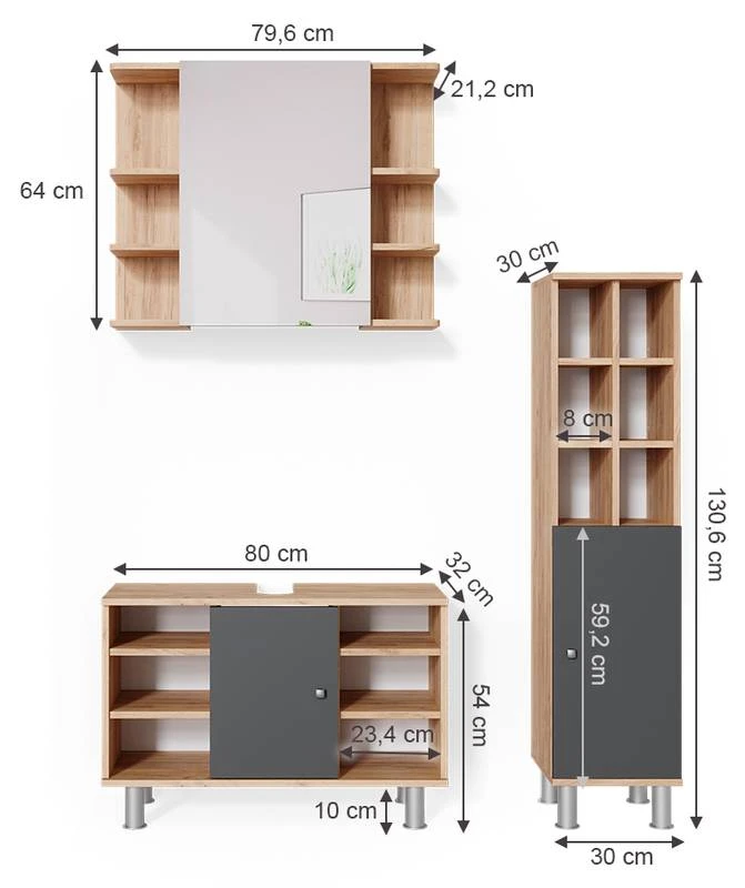 - Contenu de la livraison : • 1x armoire de toilette• 1x meuble sous-vasque• 1x chiffonnier grandDécoration non incluse