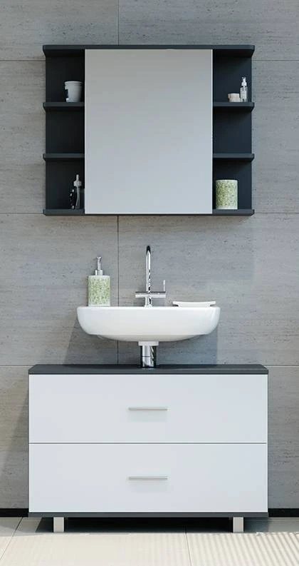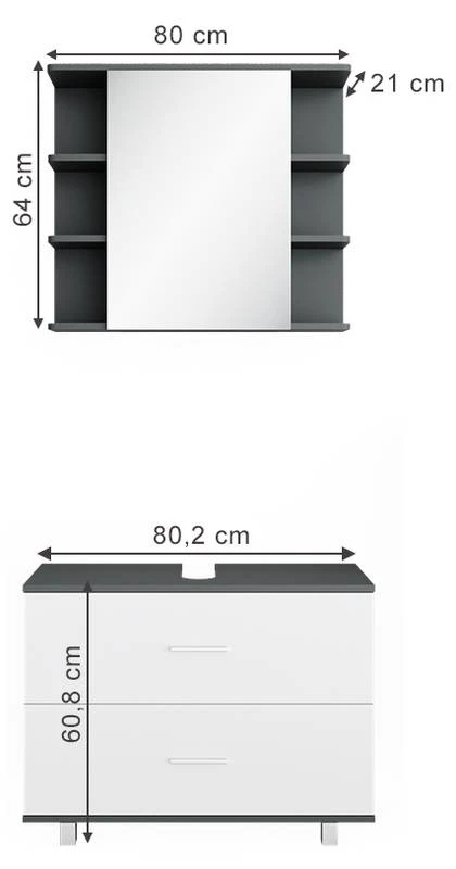 - Contenu de la livraison : • 1x armoire de toilette• 1x meuble sous-vasqueDécoration non incluse