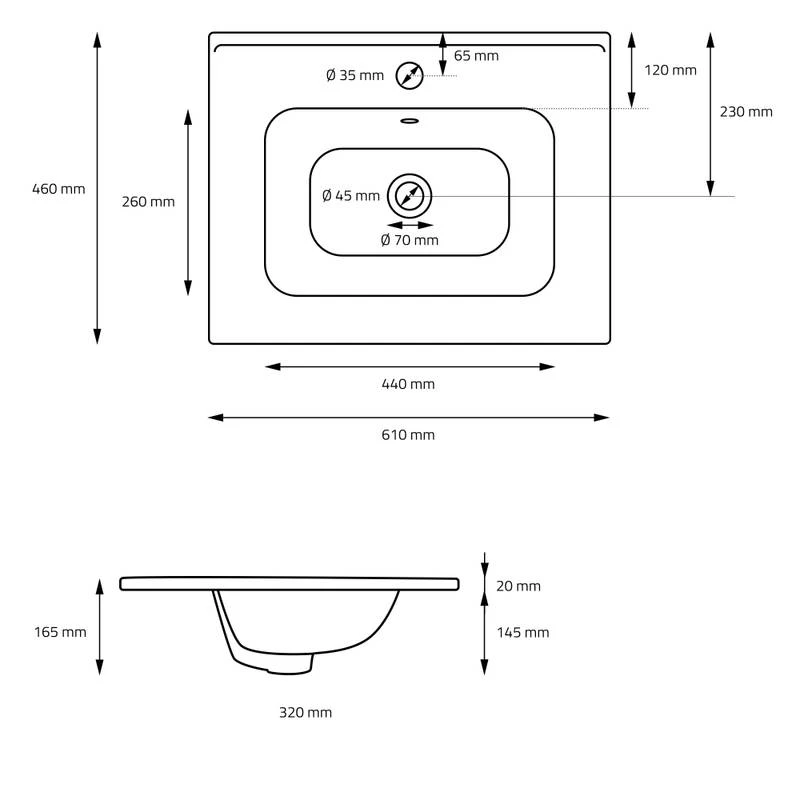 - Contenu de la livraison : 1 x lavabo encastré, 1 x garniture de vidage pour lavabo avec trop-plein