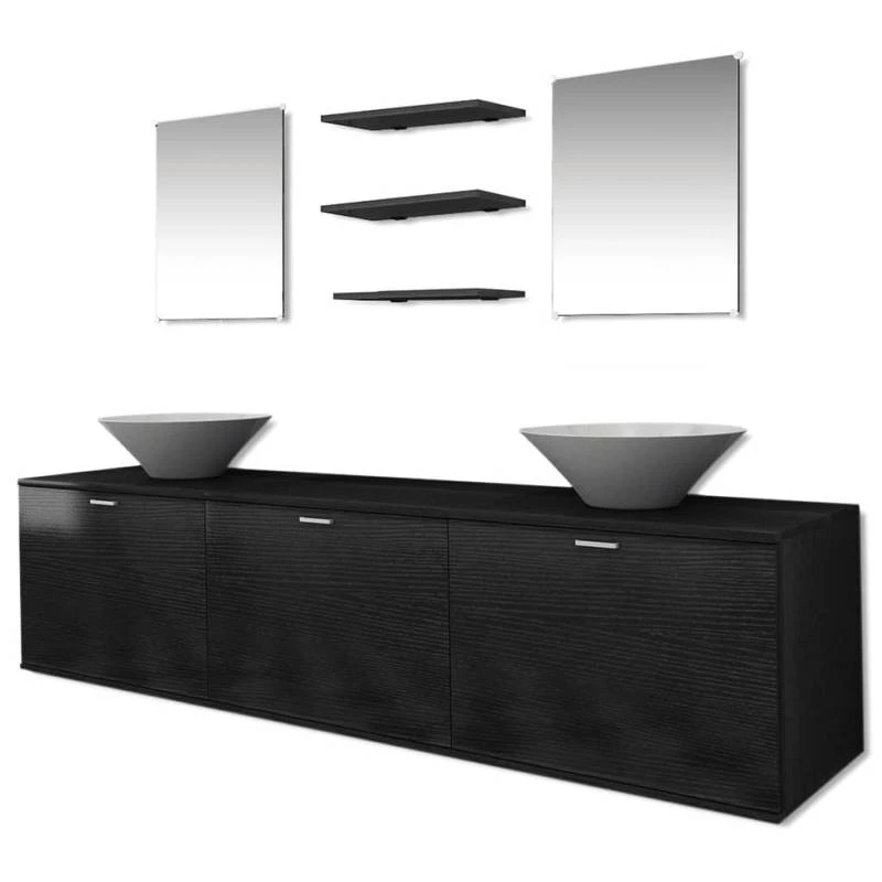 - Contenu de la livraison : Ensemble meuble de salle de bain avec vasques et miroirs 180 x 45 x 45 cm Noir